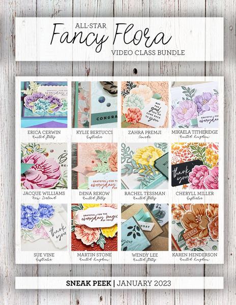 The class kits will include all 6 card projects, all the consumable supplies needed and the full color step by step tutorial PDF. Each class kit will arrive at your front door organized and ready to create. I will do most of the scoring,