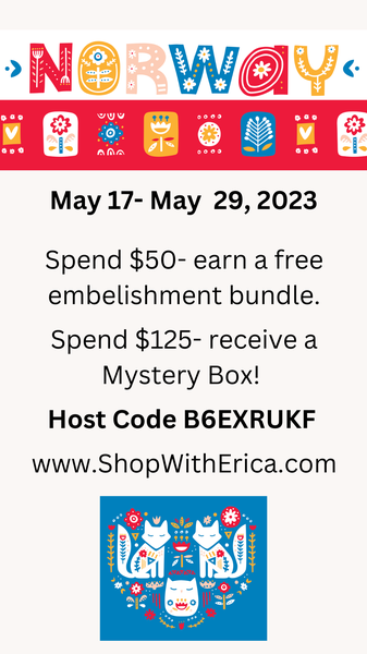 Norway Trip Mystery Boxes May 17- May 29, 2023 Use this link to shop. You MUST use Host Code B6EXRUKF Spend $50- I'll send you an embellishment gift