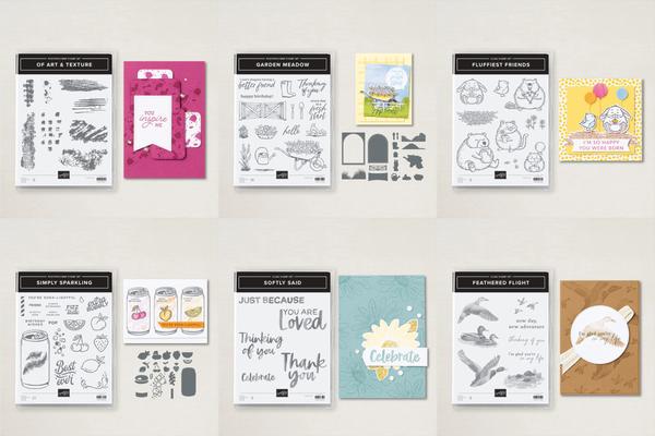 We have a slew of new Online Exclusives today! These are products you won't see in any catalog, and are all "while supplies last." My favorite is the new Simply Sparkling Bundle! In totally, there are two bundles. four stamp sets. a pack of DSP, a pack of Glimmer Paper, a bolt of ribbon and a pack of embellishments. You can see them all here!