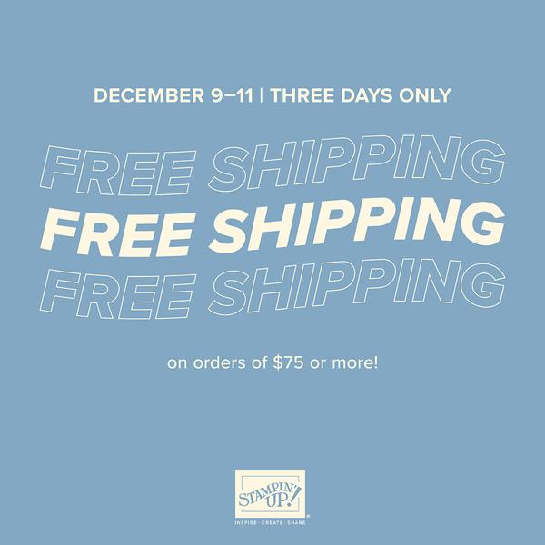 Stampin' Up announced this weekend that they are offering three days of free shipping! All orders over $75, on December 9, 10 and 11th will earn free shipping!! Combine this with my Free Decorative Trees kit offer on Monday or next Friday's Dear Santa projects (for orders placed on Tuesday and Wednesday.) Host Code TH7BZXHV