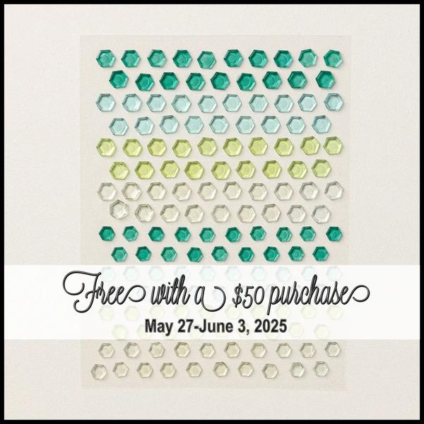 As you may already know, I'm traveling again this week, so there will be no Facebook Live on Friday. But, I would still like to reward all those who want to order from Stampin' Up while I'm gone. I will send everyone who spends over $50 both a pack of Shades of Green Adhesive Backed Hexagons as well as the All Star Tutorial PDF!