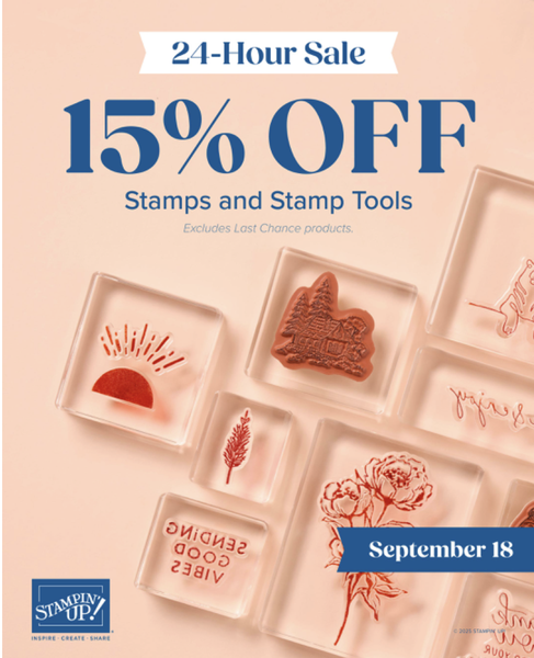 This sale is literaly JUST TODAY! So, don't hesitate to put that order in. If you're like me, you might put it off and then forget. All stamps and stamp tools are 15% off! Your can see them all here.
