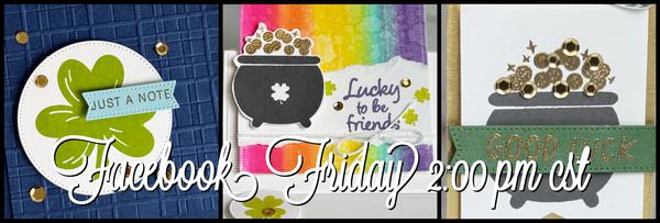 This week’s Facebook Friday (2:00 pm CST over on Facebook) will feature the Good Luck stamp set. We’ll be making three St. Patty’s Day projects! You can earn those